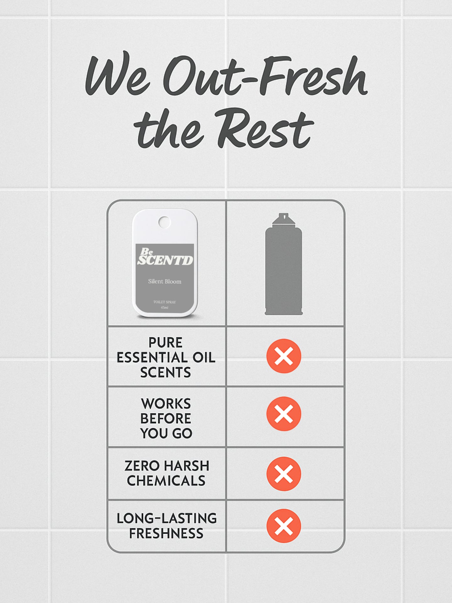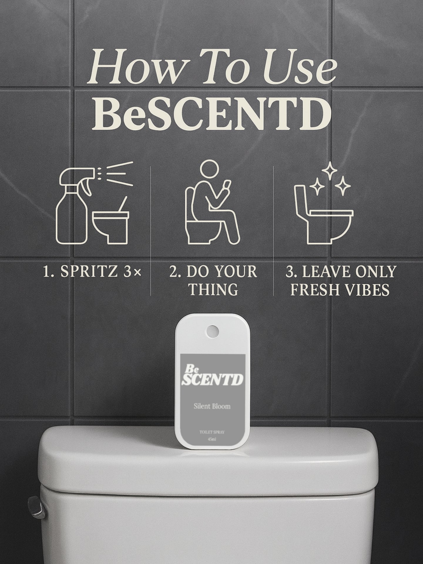 Silent Bloom is a pre-poop spray designed to keep things discreet. With just a few spritzes, it forms a fast-drying essential oil barrier that locks odors beneath the surface, so the air stays fresh and undisturbed.